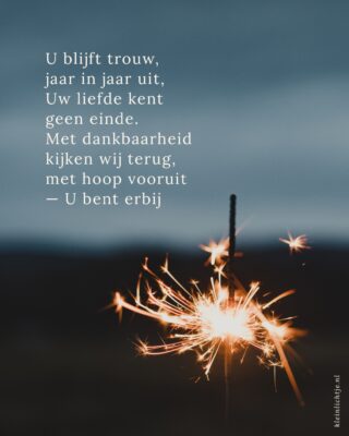 U blijft trouw, jaar in jaar uit, Uw liefde kent geen einde. Met dankbaarheid kijken...