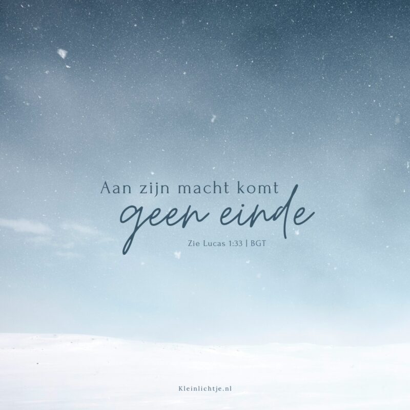 Jezus zal heel belangrijk zijn, hij zal Zoon van de allerhoogste God genoemd worden. En God, de Heer, zal hem koning maken, net zoals zijn voorvader David dat was. Jezus zal voor altijd koning van IsraΓ«l zijn. Aan zijn macht komt geen einde. Lucas 1:32,33 | BGT