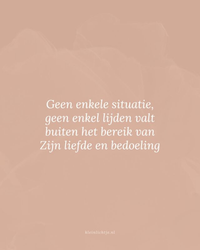 โGod keert het kwaad binnenstebuiten. Hij verandert pijn in zegen en beproevingen in overwinningen. Geen enkele situatie , geen enkel lijden valt buiten het bereik van Zijn liefde en bedoeling. We mogen erop vertrouwen dat God de regie voert, zelfs wanneer wij het niet meer zien. Efeziรซrs 1:11 zegt: “Alles gebeurt zoals Hij het besloten heeft.”