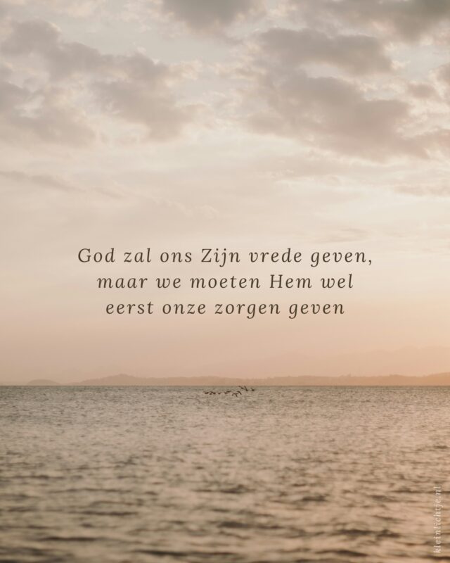 God zal ons Zijn vrede geven, maar we moeten Hem wel eerst onze zorgen geven Werp uw zorg op de HEERE, en Hรญj zal u onderhouden; Hij zal voor eeuwig niet toelaten dat de rechtvaardige wankelt. Psalmen 55:23 (HSV)