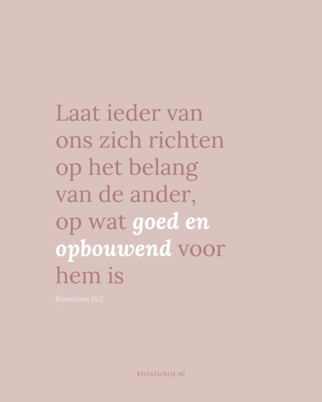 Laat ieder van ons zich richten op het belang van de ander, op wat goed en opbouwend voor hem is. Romeinen 15:2 | NBV21 Hoe kan jij iemand tot steun zijn?