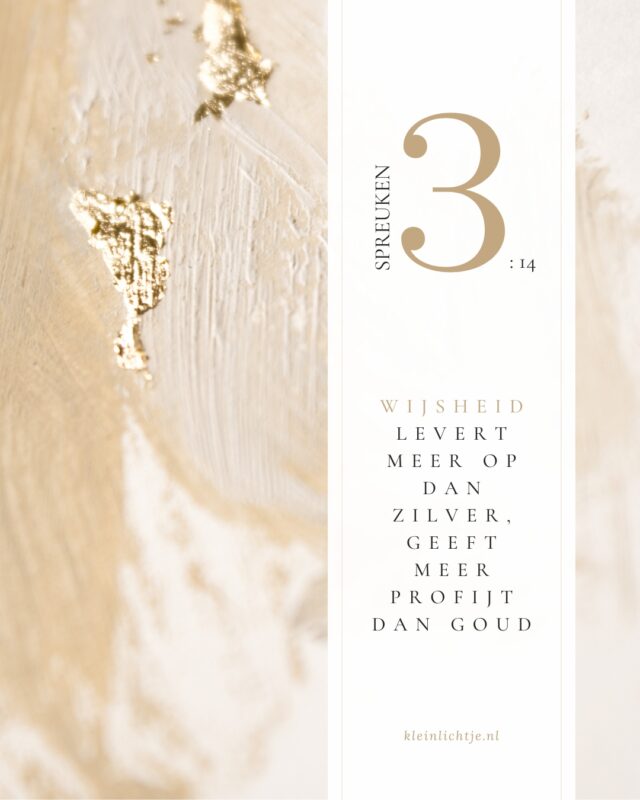 Wijsheid levert meer op dan zilver, geeft meer profijt dan goud Spreuken 3:14 | NBV21