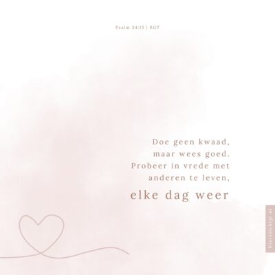 Doe geen kwaad, maar wees goed. Probeer in vrede met anderen te leven, elke dag...