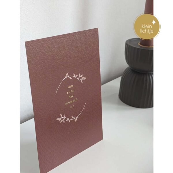 Kerstkaart met goudfolie, gedrukt op 300 grams Tintoretto Gesso papier. Dit is een papiersoort met een aquarelpapier-achtige structuur, wat de kerstkaart net wat extra’s geeft.