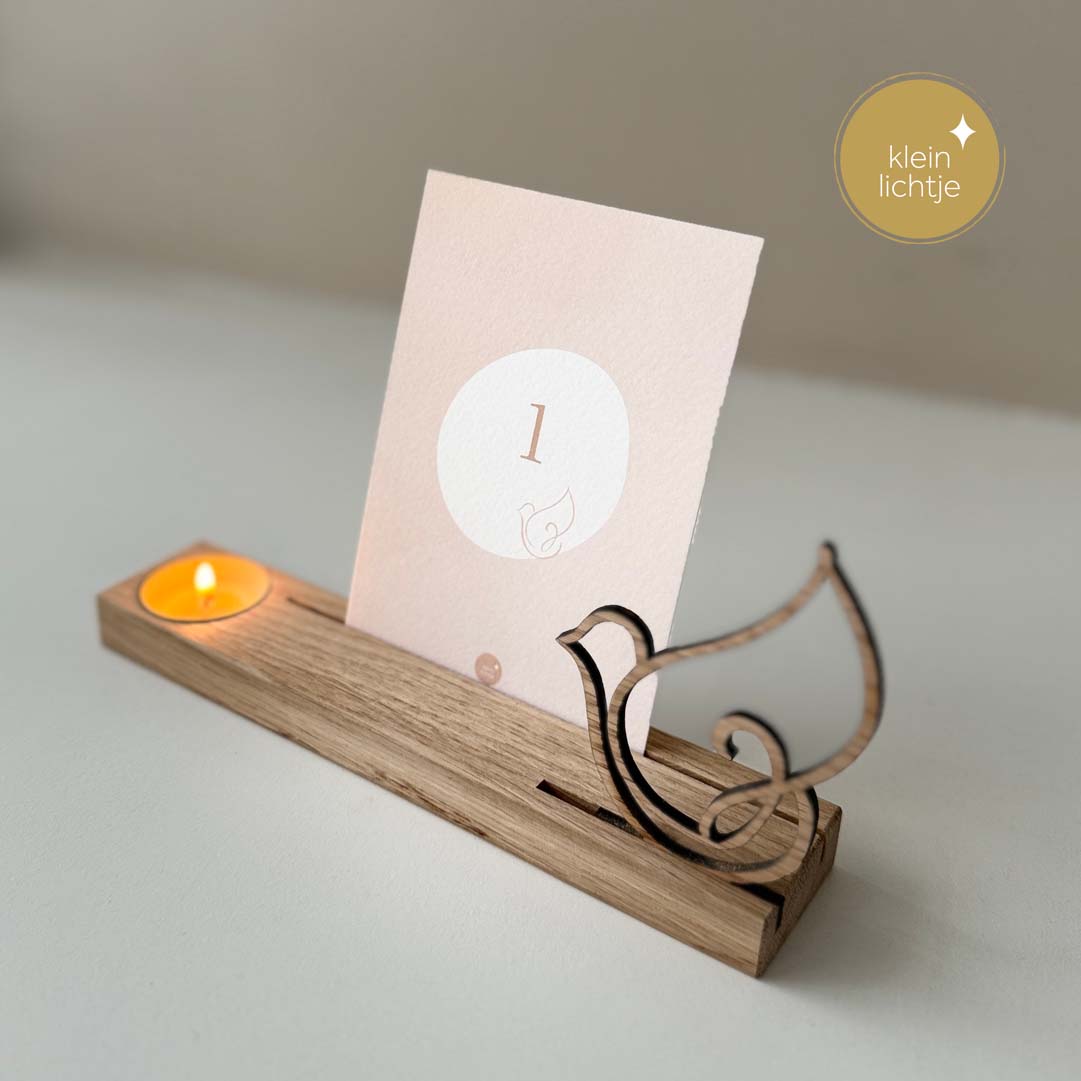 Set van 50 kaarten Op weg naar Pinksteren en standaard met symbool en waxinelichtje voor een speciale prijs.